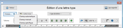 Différents types de champs automatiques peuvent être ajoutés à vos lettres type, en cliquant sur le bouton « Champs » :