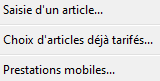 Vous pouvez ajouter des articles ou des prestations mobiles à une facture de forfaits en utilisant le bouton ![]()