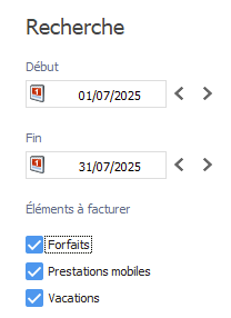 Cette fenêtre vous permet de rechercher les clients à facturer en sélectionnant les éléments suivants :