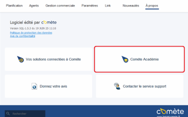 2. Dans l’onglet À propos de la Plateforme, cliquez sur Comète Académie