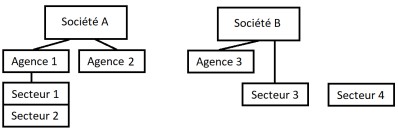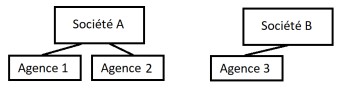 En revanche, chaque agence est obligatoirement rattachée à une seule société.