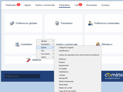Pour paramétrer les alertes liées aux diplômes, équipements, formalités, habilitations, accédez à :Plateforme > Paramètres > Exploitation > Agents > "…."