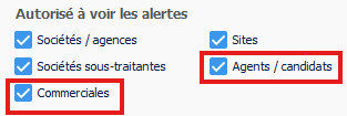 Pour que les fenêtres d’alertes s’ouvrent automatiquement au démarrage du logiciel, il est nécessaire de cocher les cases correspondantes dans la fenêtre de gestion des droits utilisateurs.