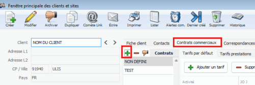 Une alerte peut être configurée sur les contrats commerciaux depuis le chemin suivant :Plateforme > Gestion Commerciale > Clients et sites > Onglet "Contrats commerciaux"