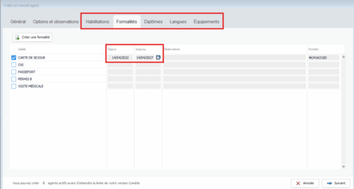 Lors de la création d’une fiche agent, il arrive que vous renseigniez des dates de début et de fin sur des habilitations, formalités, diplômes, équipements…