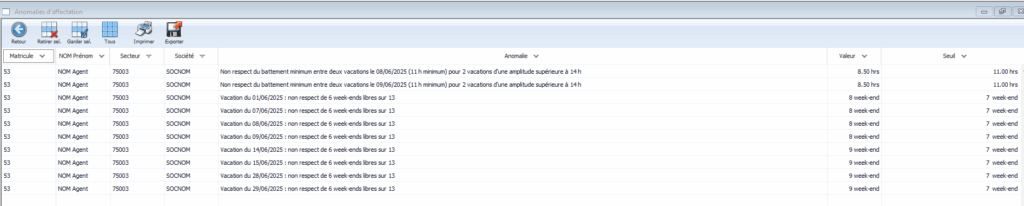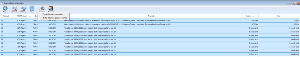 Cet utilitaire a pour objectif de recenser l’ensemble des anomalies de planification, qu’elles soient réglementaires, légales ou conventionnelles.