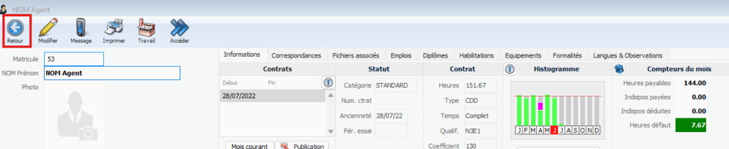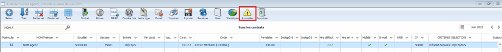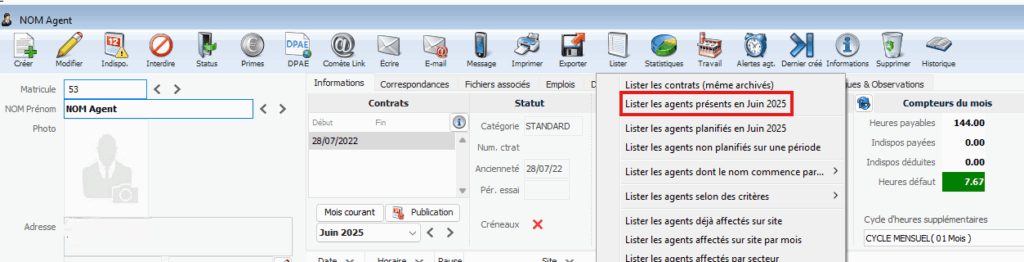 👉 Dans cet exemple, la fiche agent est positionnée sur juin 2025.