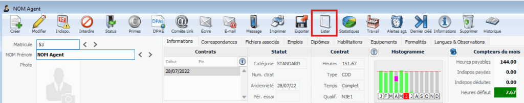 par agent (en cliquant sur Nom Prénom),