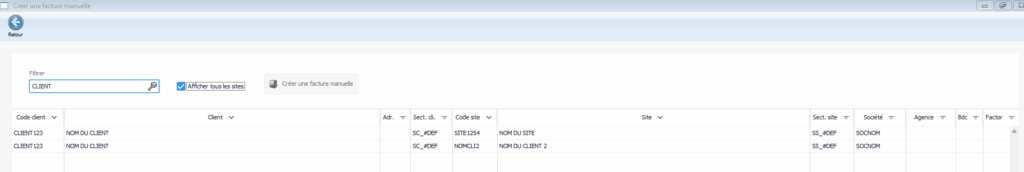 La fenêtre ci-dessus permet de sélectionner le client pour lequel vous souhaitez faire un avoir.