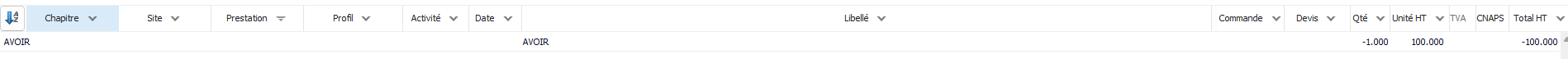 Après la génération d’un avoir, les vacations, périodes contractuelles et prestations mobiles repassent automatiquement à l’état « à facturer ».
