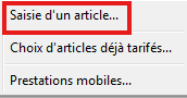 Dans la fenêtre Création d’une Ligne de Facture (avec Article), sélectionnez le chapitre Avoir ou créez-le avec