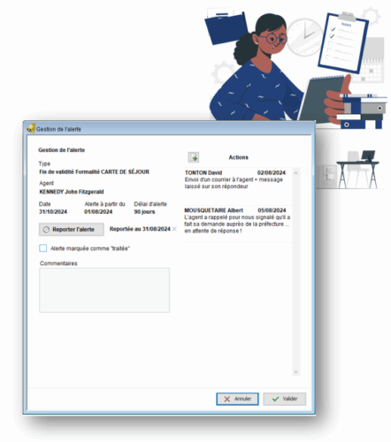 - 🎂 La fenêtre des alertes qui s’affiche à l’ouverture de Comète vous informe des anniversaires du jour de vos agents.