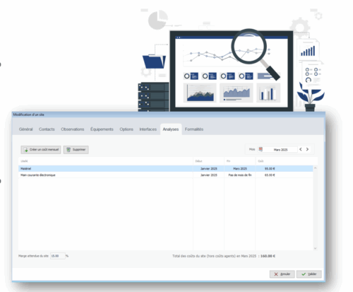 En création ou modification de Site, dans l’onglet Analyses, renseignez les coûts mensuels (hors salaires et coûts sous-traitance).