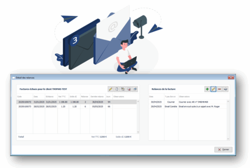 Fini les relances envoyées manuellement et une par une, vous pouvez à présent les envoyer collectivement par courrier et emails.